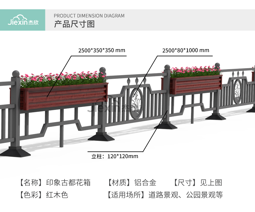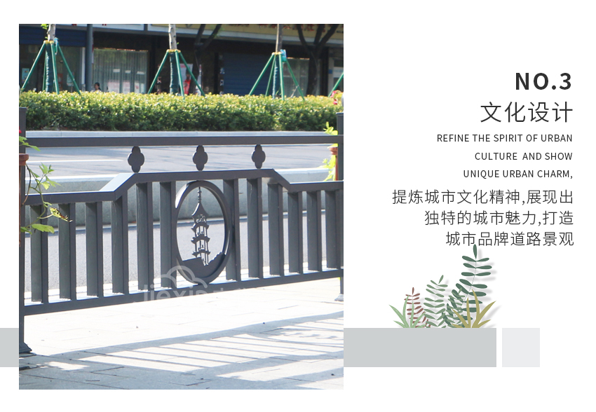 這款花箱護(hù)欄在設(shè)計(jì)元素中添加了地方特色,古老的寶塔凸顯出城市的文化底蘊(yùn)。