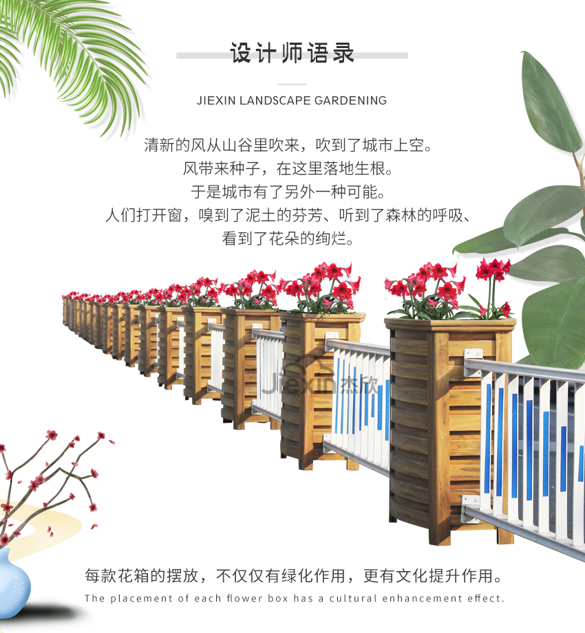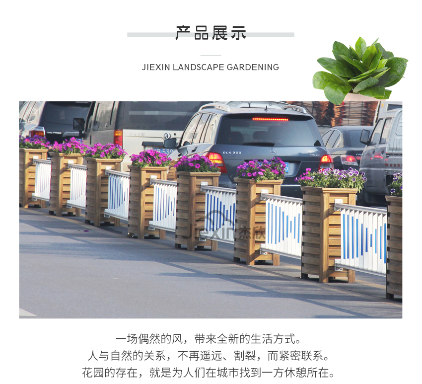 黃檀木色花箱護欄,能夠適用城市街道的景觀。