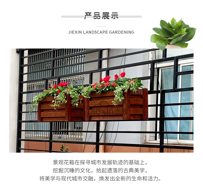 鋁合金懸掛花箱的運(yùn)用,加強(qiáng)了耐用的屬性,兼具美觀堅(jiān)固的特色。