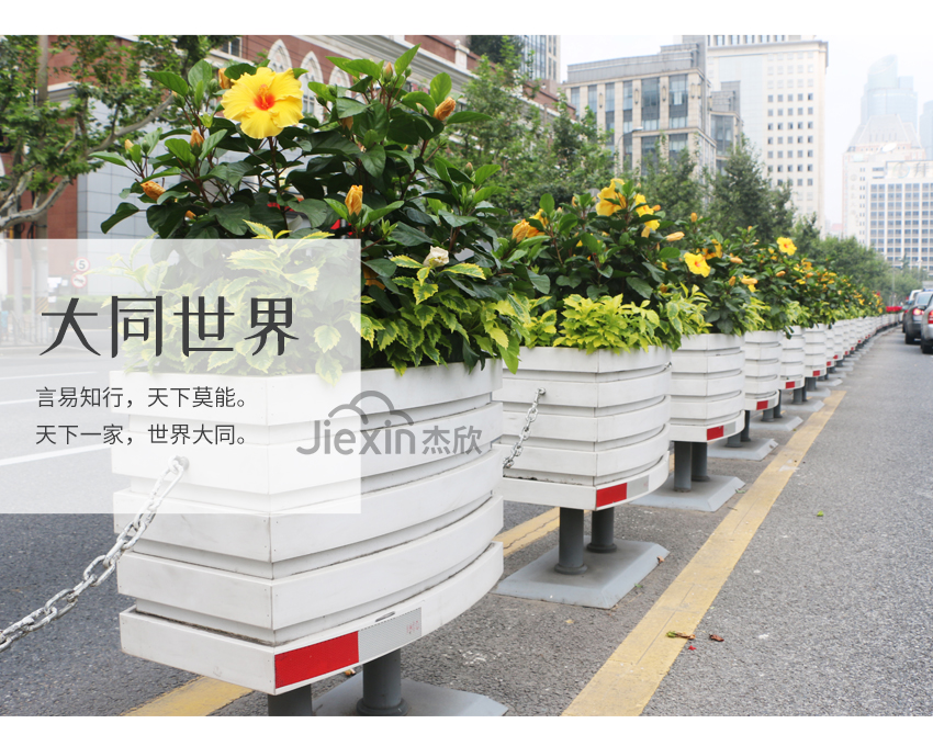 造型簡約的PVC花箱,在道路上也是一道優(yōu)美的風景線