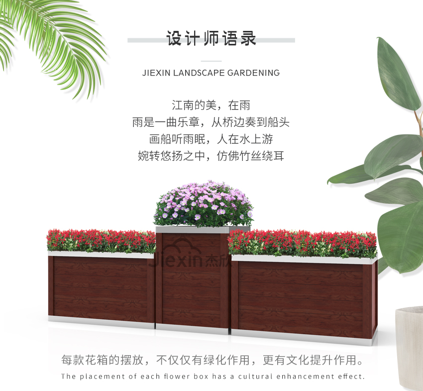 紅木色花箱依然引人注目,既富有古典格調(diào),又不失自然情懷
