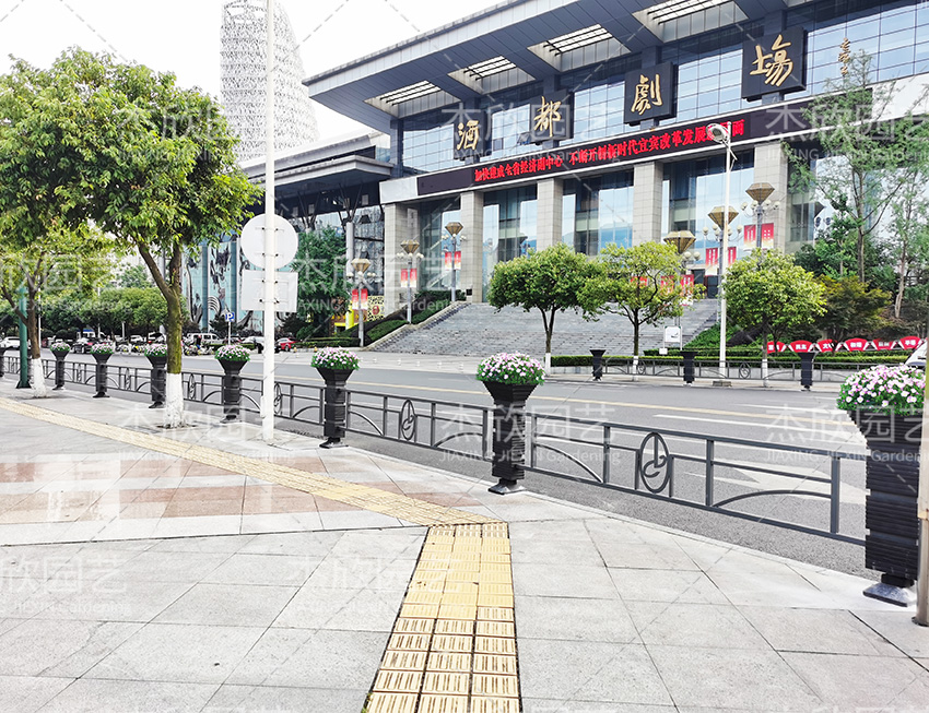 PVC隔離花箱在人行道隔離上也有著豐富的使用,樣式多變,給城市帶來景觀綠化的同時,也保障了出行的安全。
