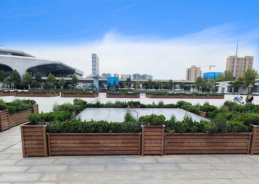 鋁合金花箱可支持定制,形成高低錯落有致的場景效果,而且顏色可選,紅木色顯出古典意蘊,白色潔凈明亮,黃檀木色自然迷人。