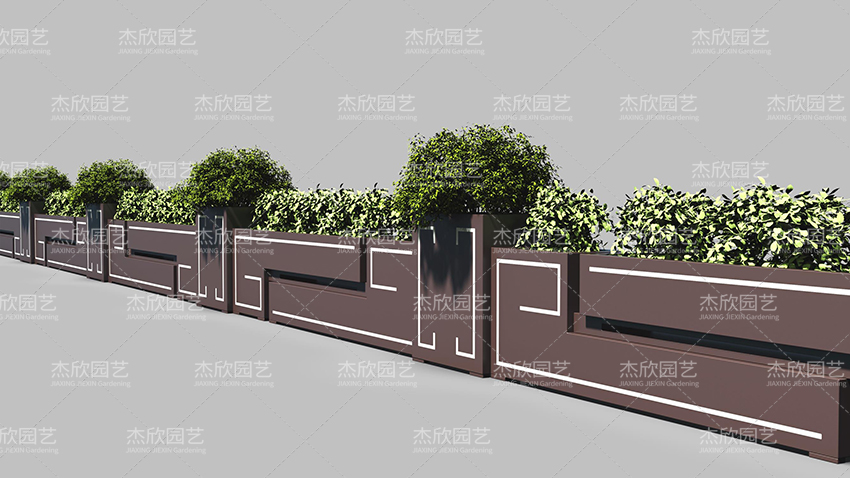 國風(fēng)審美中的淺絳色,渲染出古典雅致的氣質(zhì)。線條簡潔利落的回紋加強(qiáng)古典性。這一組道路花箱不僅是道路花箱,更是城市中不可或缺的景觀,帶給人們新的城市體驗(yàn)。