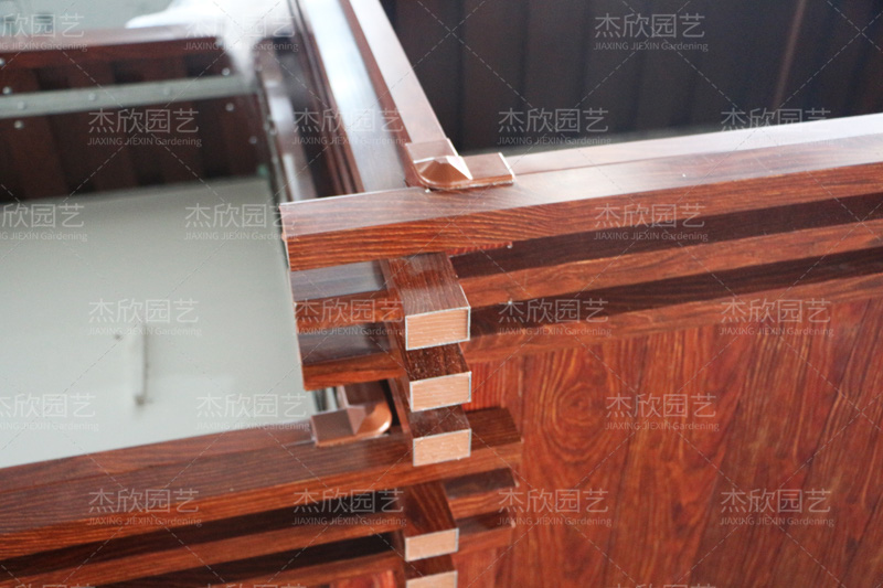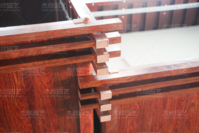花箱內(nèi)部細節(jié)展示:側(cè)板用榫卯結(jié)構(gòu)固定,不銹鋼螺絲加固