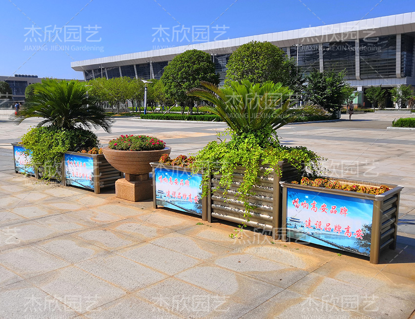 鋁合金材質的花箱有常規(guī)款和貼畫款。常規(guī)款比較簡潔,適應性強。貼畫款內容主要有文明城市內容、城市文化內容。