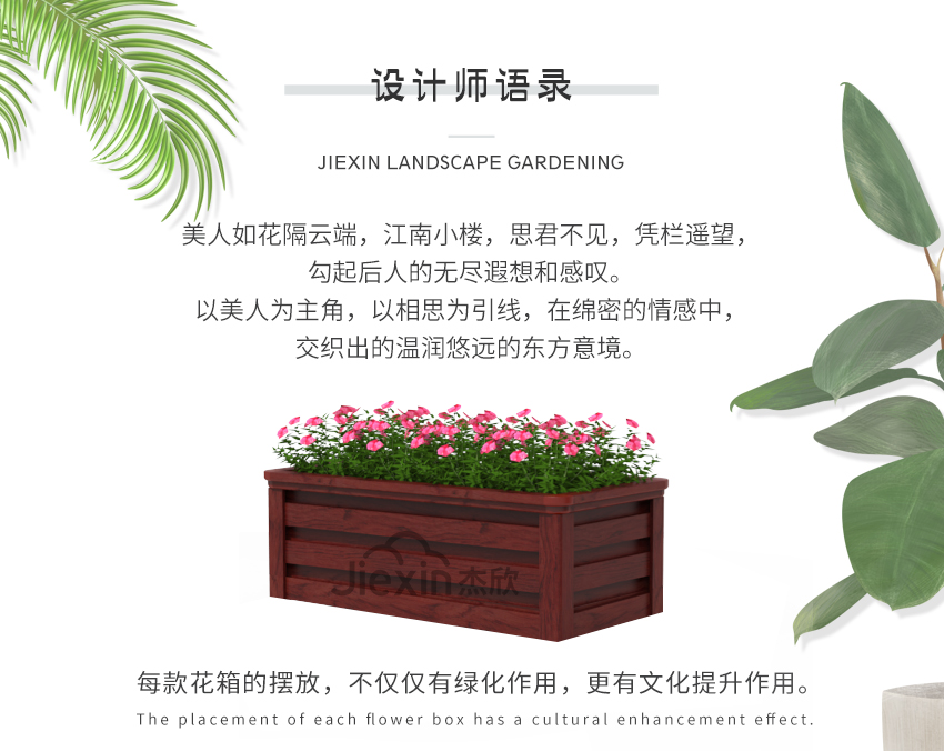 鋁合金懸掛花箱的運(yùn)用,加強(qiáng)了耐用的屬性,兼具美觀堅(jiān)固的特色。