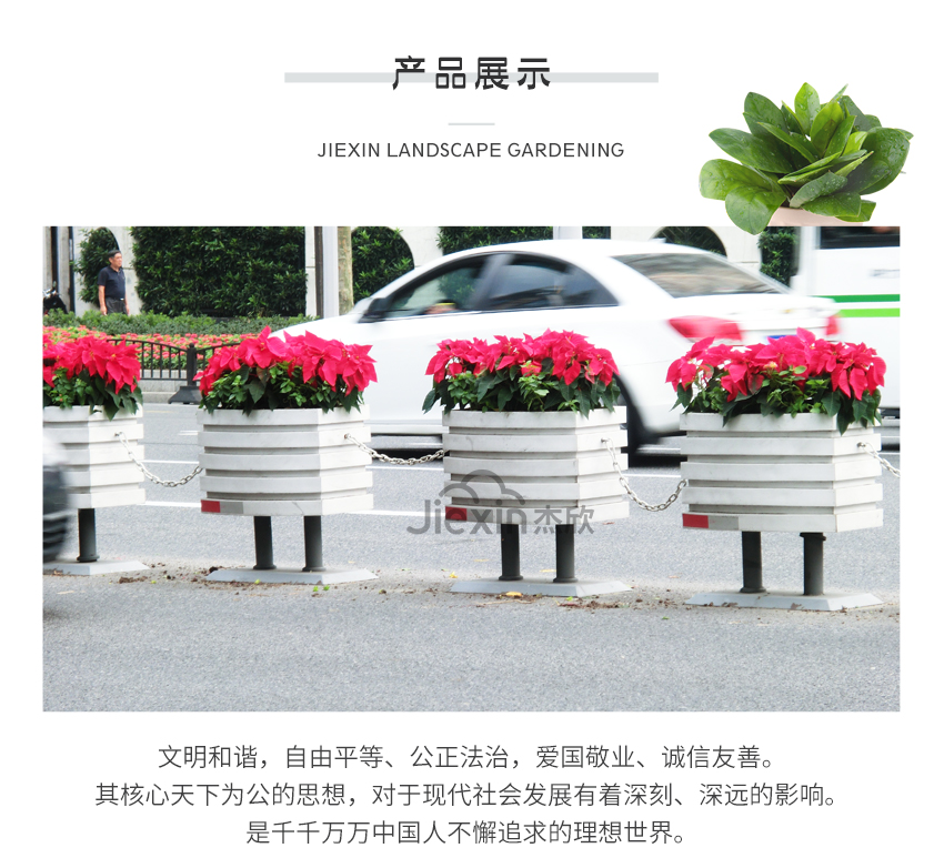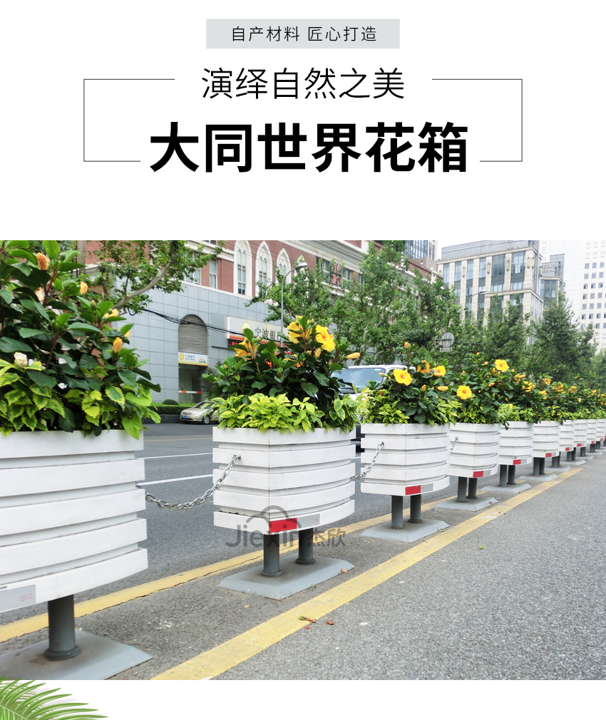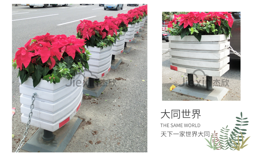 造型簡約的PVC花箱,在道路上也是一道優(yōu)美的風景線