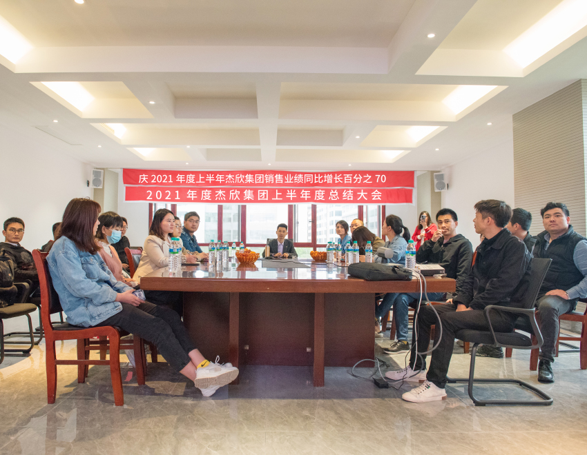 2021年7月6日,杰欣集團(tuán)上半年度總結(jié)大會如期在江西、浙江、四川三地聯(lián)動開啟,回顧上半年杰欣發(fā)展歷程,展望下半年企業(yè)遠(yuǎn)景。杰欣集團(tuán)總經(jīng)辦、銷售部、市場部、生產(chǎn)部及全體行政人員參加會議。