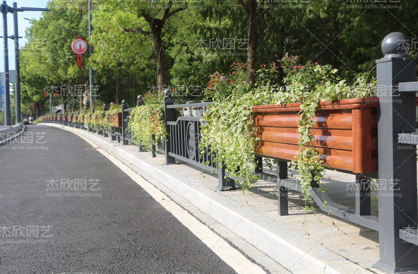 花箱道路護欄解決了兩大道路景觀難題。第一是有效延長了花箱產(chǎn)品的使用壽命。在此之前的花箱產(chǎn)品以防腐木花箱居多,并不能在市政領域使用很久。而花箱護欄引入了鋁合金材質(zhì),使得有效隔離成為現(xiàn)實。