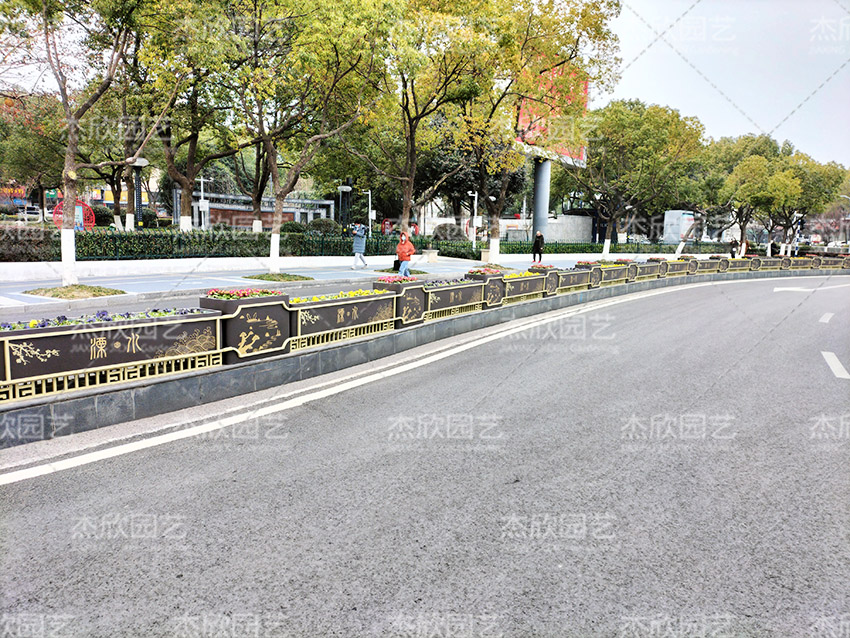 這款金玉滿堂花箱從設(shè)計角度來說,可謂精美至極,如同一條錦帶環(huán)抱城市。