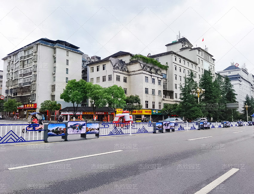 道路花箱護(hù)欄,既提供了百花的承載體,也匹配了城市道路景觀的要求。