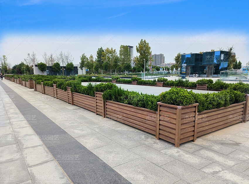 鋁合金花箱可支持定制,形成高低錯落有致的場景效果,而且顏色可選,紅木色顯出古典意蘊,白色潔凈明亮,黃檀木色自然迷人。