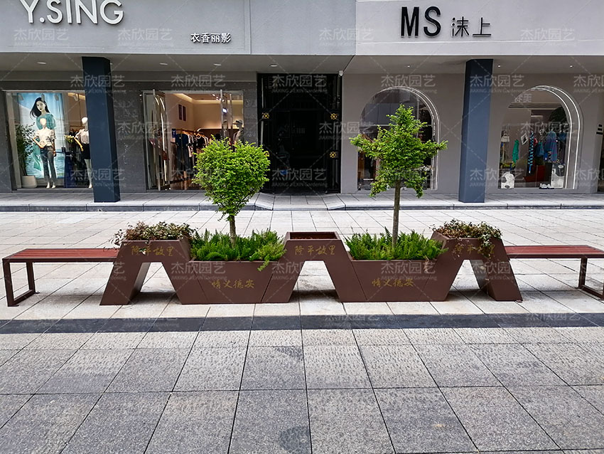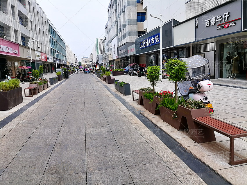一枝一葉總關(guān)情。繁華的商業(yè)街,游人如織,為城市街區(qū)帶來具有觀賞性和功能性的花箱坐凳。