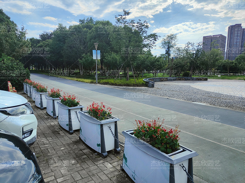 湖光山色花箱,靈感來(lái)源于蘇軾名句“水光瀲滟晴方好,山色空蒙雨亦奇”。