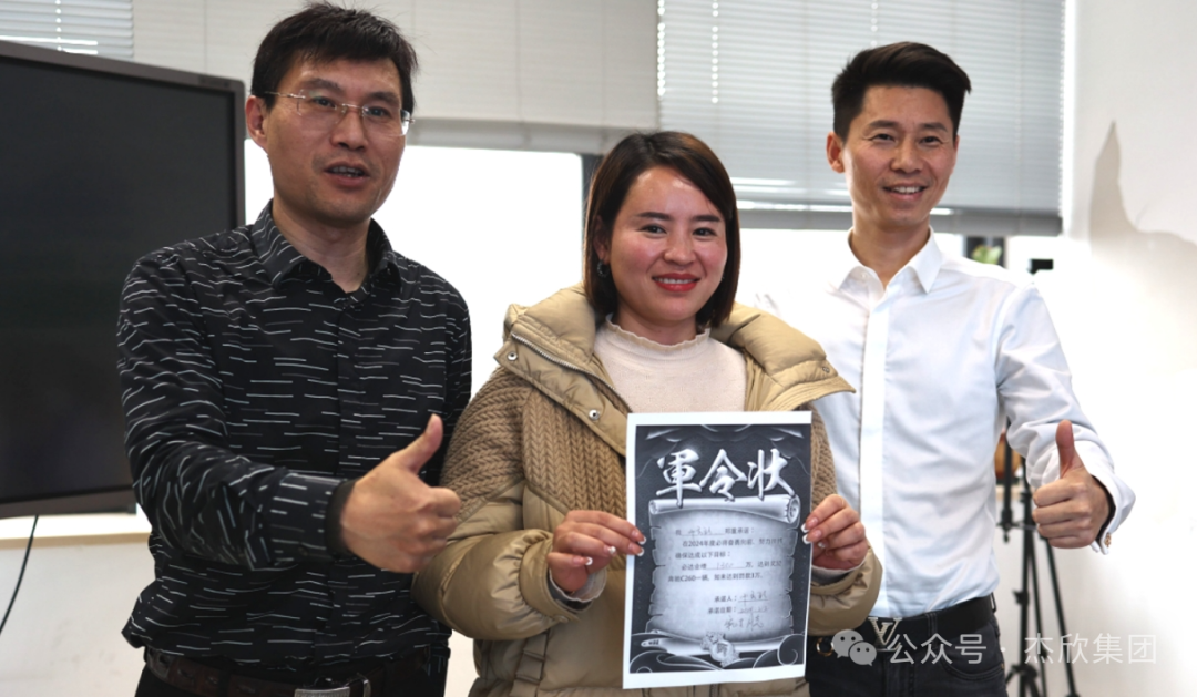 為激勵員工提升自我,傳承優(yōu)良的奮斗精神,杰欣董事長特簽軍令狀,激勵銷售精英在2024年突破自我、勇于爭先,為自身為集團的發(fā)展做出突出貢獻。