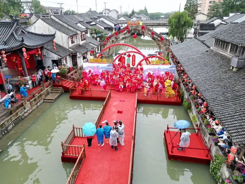 近日千年古鎮(zhèn)楓涇舉辦了第十七屆“吳根越角”楓涇水鄉(xiāng)婚典。作為2023上海旅游節(jié)的重大主題活動(dòng)之一,楓涇水鄉(xiāng)婚典結(jié)合古鎮(zhèn)特色和優(yōu)勢,打造120米水上婚典T臺(tái),以傳承經(jīng)典、迭代破圈的方式煥新亮相。