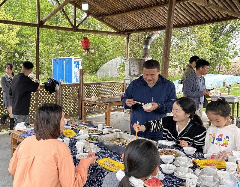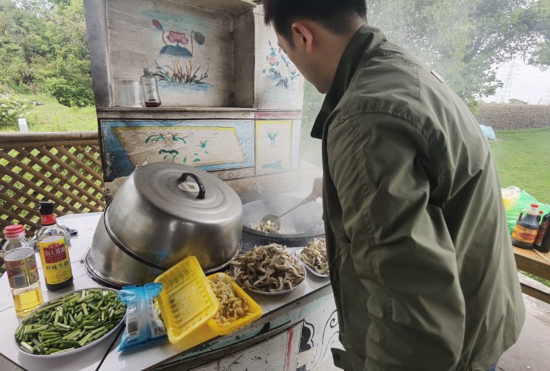 中午時(shí)分,大家來到了一個(gè)景區(qū)營(yíng)地,準(zhǔn)備開始燒烤野炊。大家分工合作,有人負(fù)責(zé)燒烤,有人清洗鍋具,有人則開始做菜。在歡聲笑語中,一串串香氣撲鼻的烤肉和一鍋熱騰騰的野米飯、一碗碗時(shí)令佳肴陸續(xù)出爐。