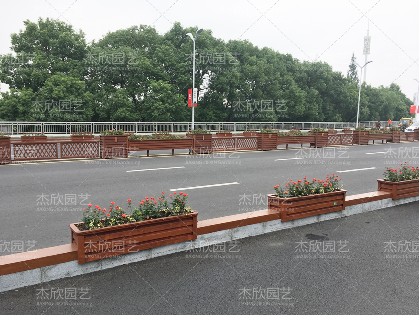 紅色木紋花箱,景觀效果好