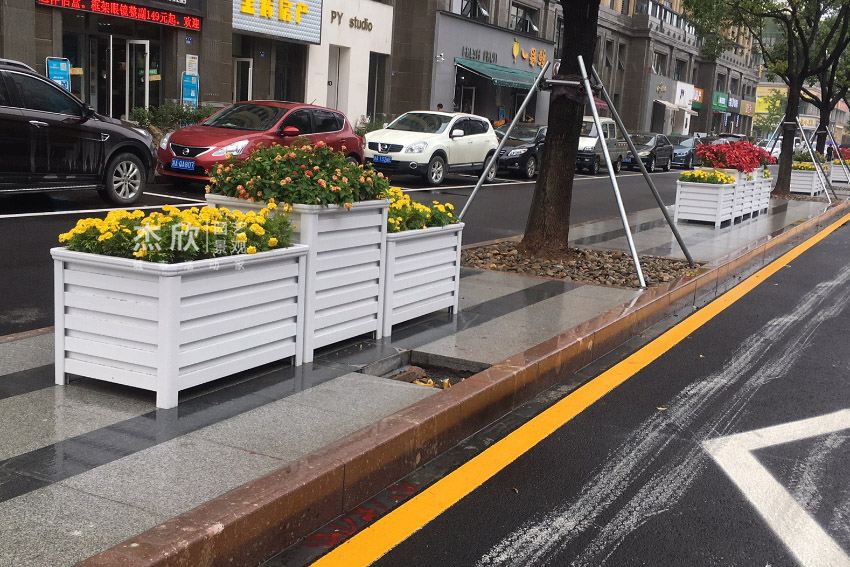 白色花箱,具有鮮明的街景提亮效果