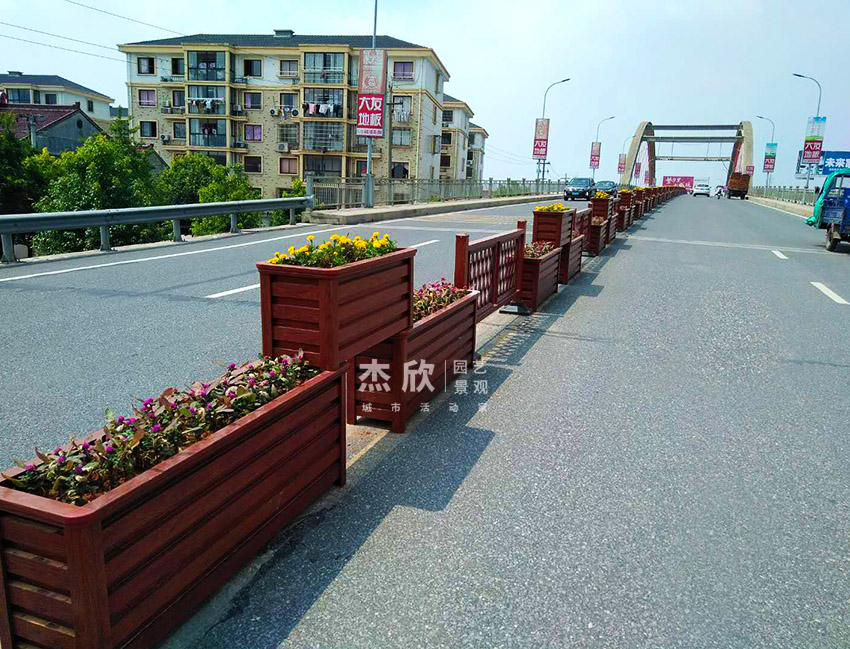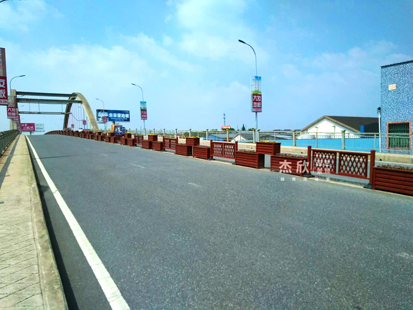 紅木色花箱,網(wǎng)格護(hù)欄,給橋梁添加景觀效果