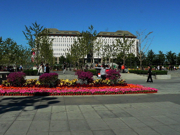 目前,廣場(chǎng)占地面積為1.5萬平方米,呈棋盤狀分布,但硬化的廣場(chǎng)地面十分空曠,綠化面積較少。