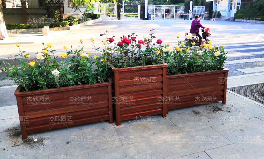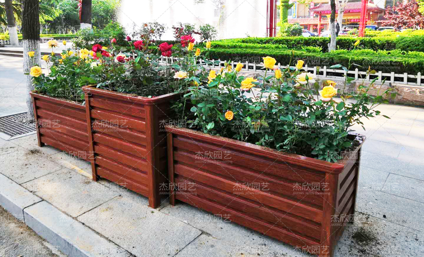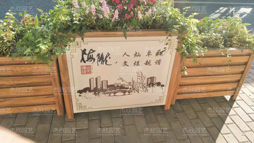 有木紋花箱,也有將文化特色寓于木紋花箱中。有造型花箱,也有將文化特色寓于造型花箱中。