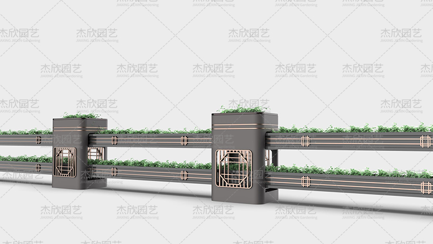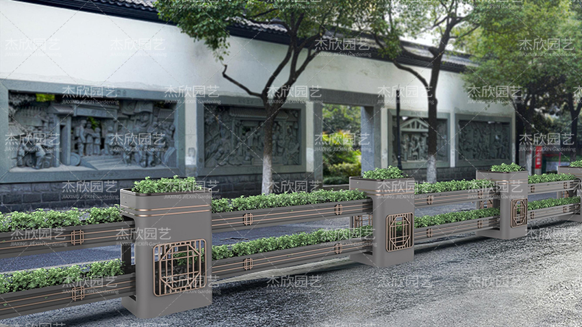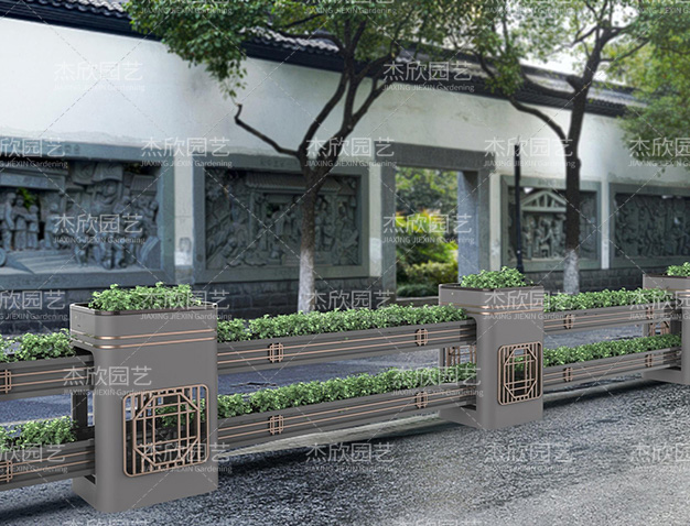 園林是中國(guó)建筑美的杰出代表,也是中國(guó)人對(duì)人居環(huán)境的詩(shī)意闡述。園林寄托著人們對(duì)美好生活的向往。園林藝術(shù)在當(dāng)代設(shè)計(jì)中也屢見(jiàn)不鮮,并深受喜愛(ài)。這組道路花箱將園林之中的窗格藝術(shù)之美融入其中,取其神,去其形,用現(xiàn)代手法表現(xiàn)出祥瑞之意。