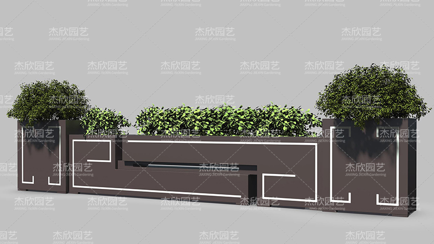 國風(fēng)審美中的淺絳色,渲染出古典雅致的氣質(zhì)。線條簡潔利落的回紋加強(qiáng)古典性。這一組道路花箱不僅是道路花箱,更是城市中不可或缺的景觀,帶給人們新的城市體驗(yàn)。