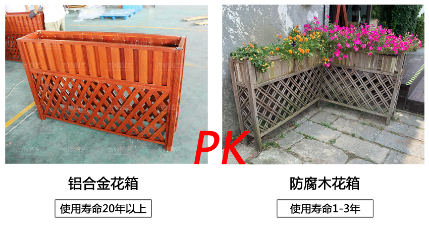木紋鋁合金花箱與防腐木花箱同款對比: