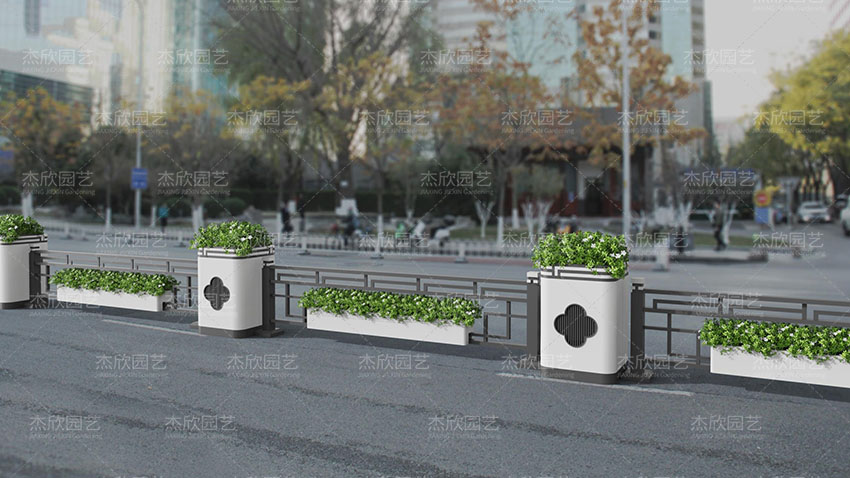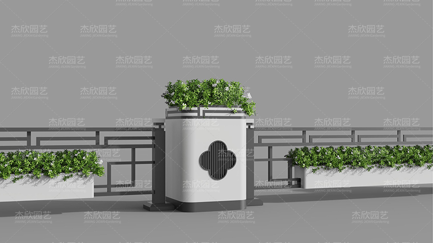 現(xiàn)代窗紋花箱,加入了窗紋元素,使得花箱更加活潑。這款花箱將現(xiàn)代和傳統(tǒng)融合,在用色上,以現(xiàn)代風(fēng)的黑白灰為主,在造型上強(qiáng)調(diào)簡(jiǎn)約。同時(shí)又加入了傳統(tǒng)元素,在護(hù)欄上增添造型,在花箱加入花卉窗紋,富有古典氣息。
