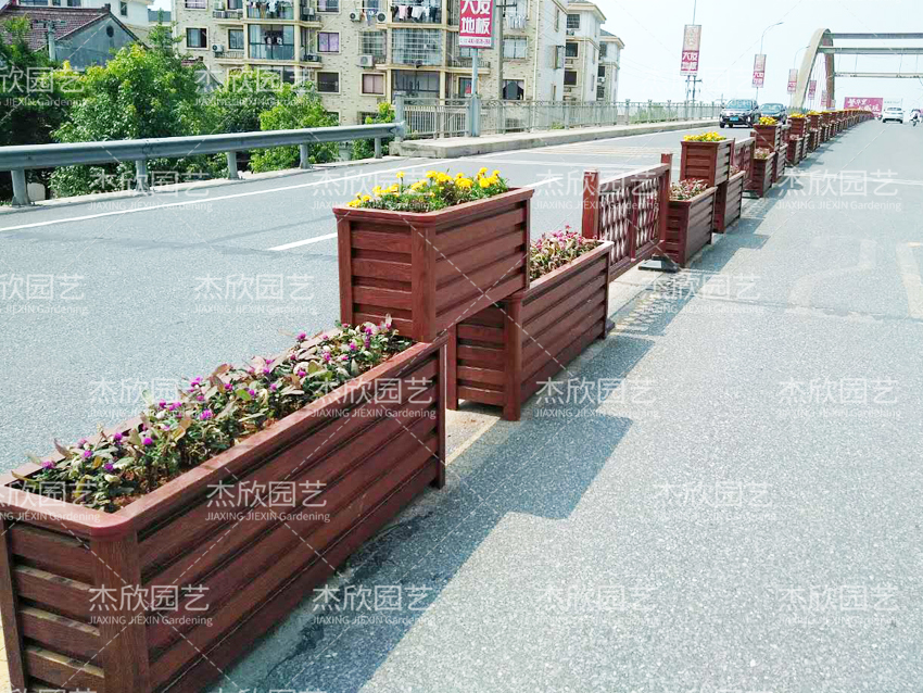 一般橋梁路面兩側(cè)的寬度窄,花箱的規(guī)格偏小,花箱樣式簡單。橋梁道路中央隔離帶寬度較大,花箱的規(guī)格偏大,花箱樣式豐富。