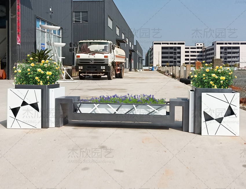現(xiàn)代花箱強(qiáng)調(diào)簡(jiǎn)潔、簡(jiǎn)約,體現(xiàn)在顏色的黑白灰、造型的干凈利落和材質(zhì)的質(zhì)感。這款現(xiàn)代城市花箱適應(yīng)了現(xiàn)代城市的審美風(fēng)格,而